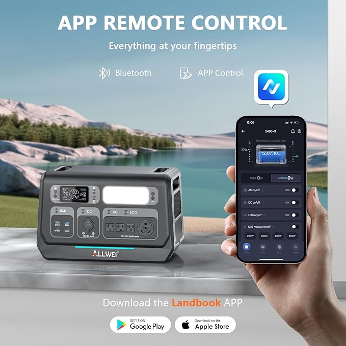 - 【Smart App Function】Smart Remote Control the 2400-3 remotely with ALLWEI Landbook APP via Wi-Fi or Bluetooth for device connection, software update, multiple customized settings, monitor remaining battery.