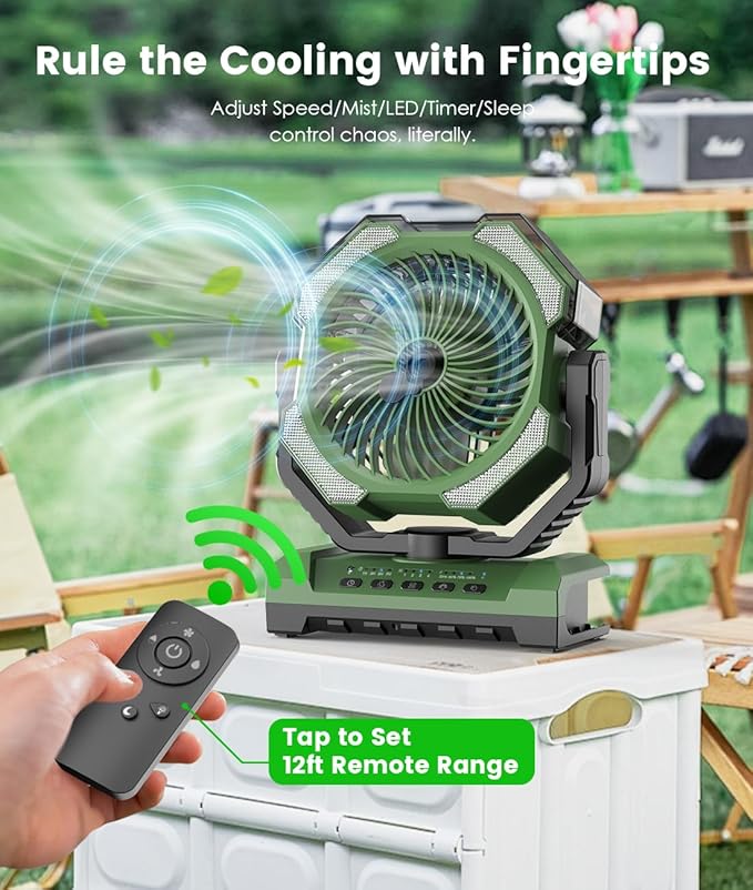- Anywhere Breeze, Anytime Relief - From campsite to courtyard, patio, garage, backyard: Hang it in tents, on RVs, or stabilize on uneven ground. Backyard BBQ breeze & bedside sleep aid. Ultimate Versatility Camping Essentials Gear: One Fan, Every Adventure.