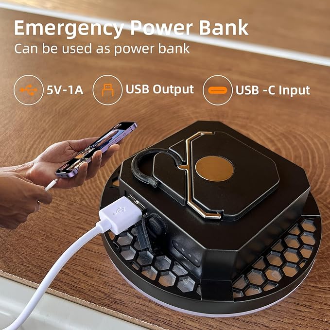 - [Portable and Versatile Design]: Designed for easy transport, it can be hung in a tent or attached to metal surfaces with its built-in magnet for hands-free use