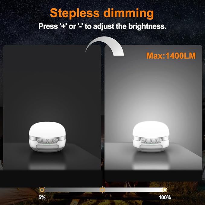 - A 10400mAh Power Bank: Last up to 420 hours after a full charge (at the lowest brightness ) , equiped with a 10400mAh battery, this camping light will charge your phone during your camping/hiking. It's also a nice choice to place it in your bedroom in case of hurricanes or power outages.