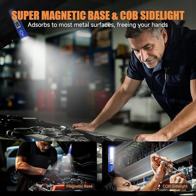 - 【Magnetic Flashlight & Versatile Sidelight】The LED flashlight features built-in strong magnetic base at the tail, allowing it to attach to metal surfaces and leaving both hands free for the task at hand like industrial maintenance, car repair or camping. The sidelight serves as a night light, warning light, and direction indicator light. Dual switch design, the main light and side light can be turned on or off at the same time, giving you more lighting mode options.