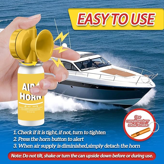 - 【Powerful Sound Blasts】Make a loud, and powerful sound,130BD air horn can be heard from a 1/2 mile away,Helps you cope with all kinds of emergencies,Ideal for every boat emergency kit