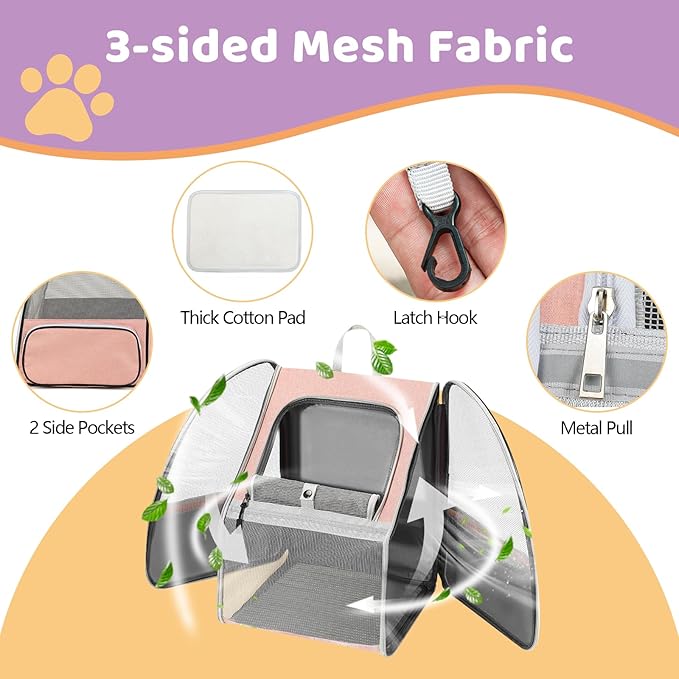 - Breathable & Visible Design – Featuring a three-sided tear-resistant PVC mesh, this backpack ensures optimal airflow and visibility, keeping your pet comfortable during long travels. The included cat feather toy enhances interaction and playtime.
