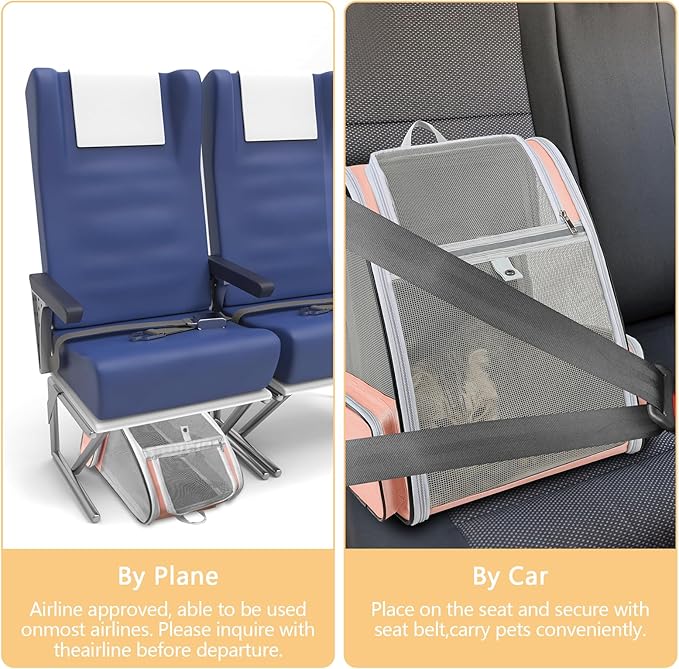 - Spacious & Airline Approved – This large pet backpack (12.6''L x 11''W x 15.7''H) comfortably fits cats, small dogs, and other small to medium-sized pets up to 15 lbs. Designed to meet most airline under-seat requirements (please check with your airline before departure).
