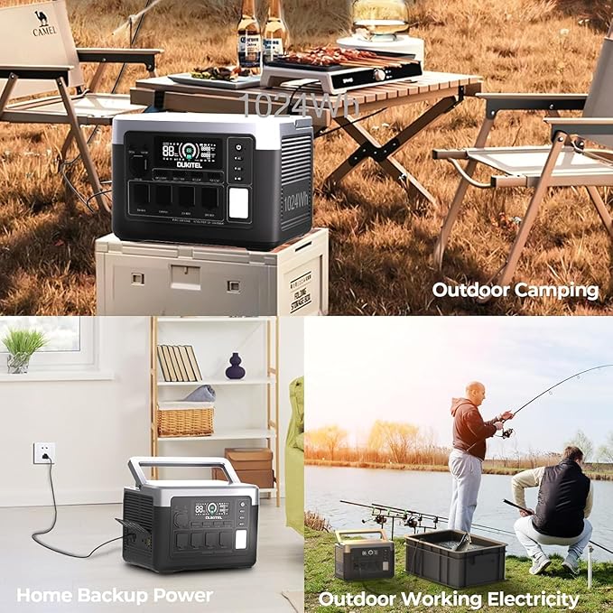 - 【1800W Output And 1024wh Large Capacity】With 1800W continuous power (3600W peak), this OUKITEL portable power station can handle nearly all your essentials - from refrigerators and microwaves to air conditioners and blenders. Its massive 1024Wh capacity delivers extended runtime, while solar compatibility keeps you powered off-grid. The perfect emergency backup for blackouts or your next camping adventure.