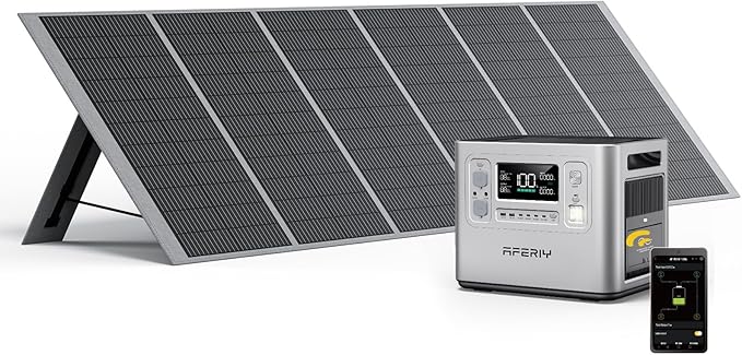 AFERIY P210 2400W Portable Power Station with 400W Solar Panel, 2048Wh LiFePO4 Battery Backup with AC & Solar Charging, Quiet Generator for Home Use, Outdoor Camping, RV, Emergency Power Supply