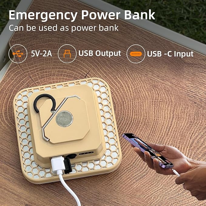 - Innovative Square Design with Enhanced Portability: The square shape offers a modern aesthetic while the built-in hidden hook and magnetic base provide versatile mounting options. Hang it in your tent or attach it to metal surfaces for hands-free convenience during your camping adventures.