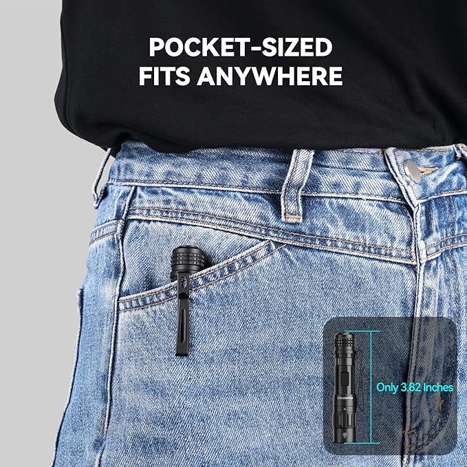 - Carry Ready Pocket Light: Compact 3.8-inch (credit card length) with 2.1oz ultralight build, this small pocket - sized flashlight is the perfect everyday carry companion for home use, outdoor camping and emergencies. With two SS body clips, it can be effortlessly attached to your cap, belt, body armor or backpack.