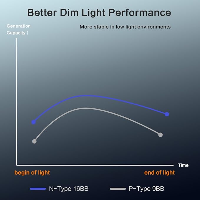 - [Bifacial Technology for Higher Efficiency] Dual-sided power generation captures sunlight from both the front and back, increasing energy output by up to 25% compared to traditional solar panels.