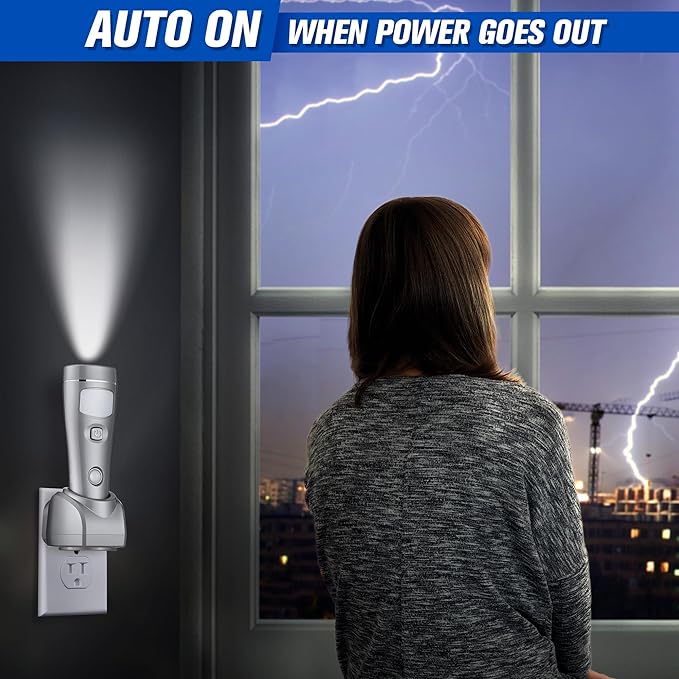 - Safe and Efficient: keep this wall flashlight plugged in for when you need a flashlight with a function that makes it turn on automatically when the power goes out; It can be applied as a home power supply; In order to provide a safe view when most needed; Unplug the flashlight, which can be applied as a power off flashlight; It is suitable for working in dark places; You can easily check the circuit safety and protect yourself