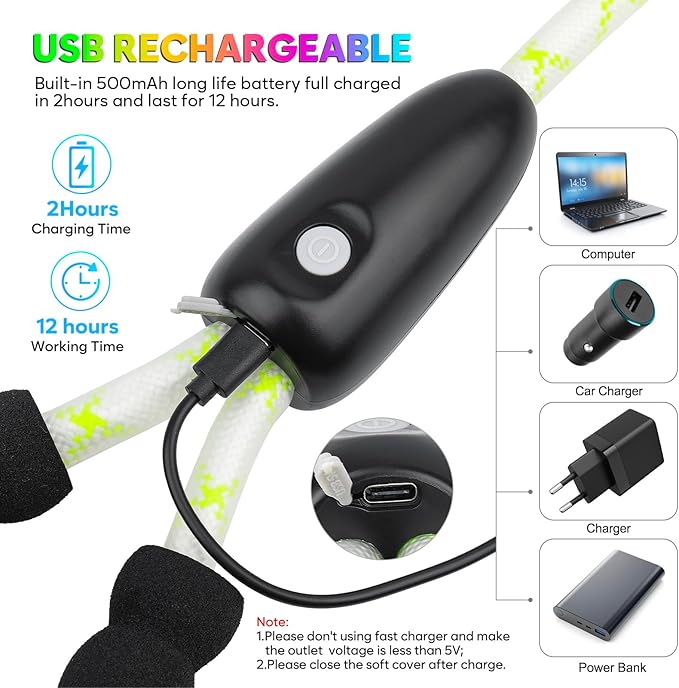 - 500Mah Rechargeable Long time Battery:The LED dog leash is charged by USB Type-C, taking approximately 2 hours to fully charge and providing continuous light for about 20+ hours. The lighted dog leash saves you time and money and is perfect for camping, night hikes, and nighttime adventures!-perfect for nighttime adventures, camping trips, or late-evening walks with your furry friend.