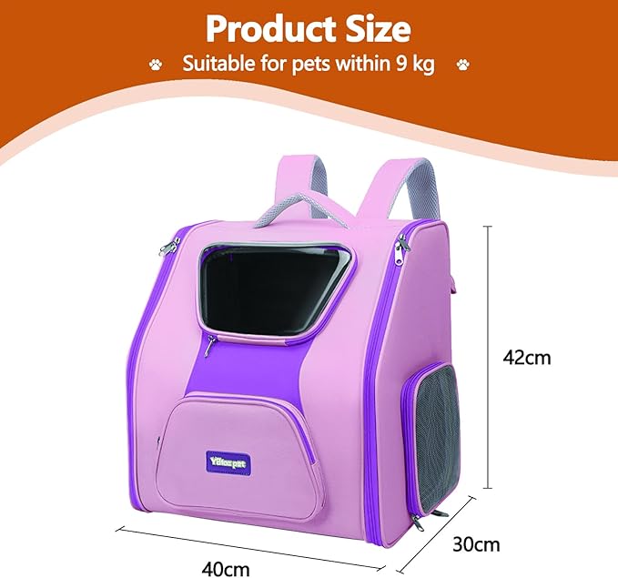 Cat Backpack, Comfortable Dog Backpack for Travel Hiking and Camping, Breathable Pet Backpack, Airline Approved Cat Travel Bag(Purple)