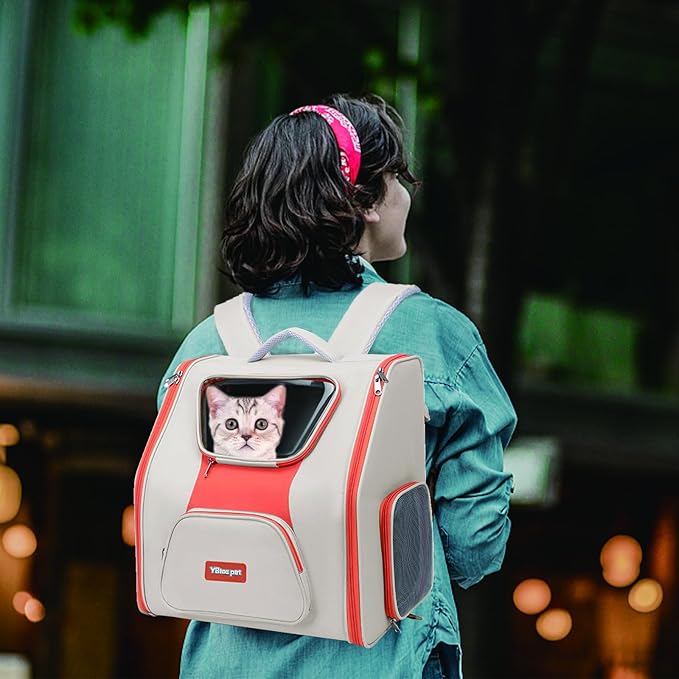 Cat Backpack, Comfortable Dog Backpack for Travel Hiking and Camping, Breathable Pet Backpack, Airline Approved Cat Travel Bag(Khaki)
