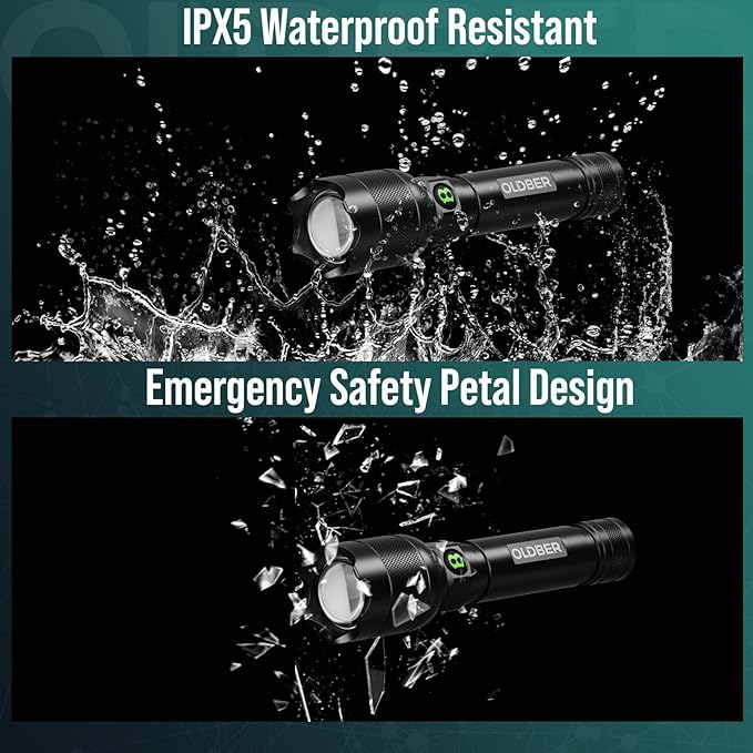- Versatile Use: The flashlight set includes two rechargeable flashlights and two USB cables. OLDBER lightweight, practical flashlights are ideal for home, everyday lighting, power outages, emergencies, and outdoor activities like dog walking, hiking, or camping.