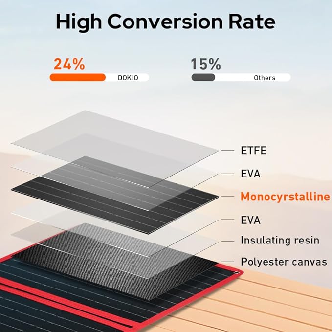 - 【ETFE Water-Resistant Surface】 High-transmittance mono cells with ETFE lamination resist wear/UV and light rain; ports aren’t waterproof—keep them dry; do not submerge.