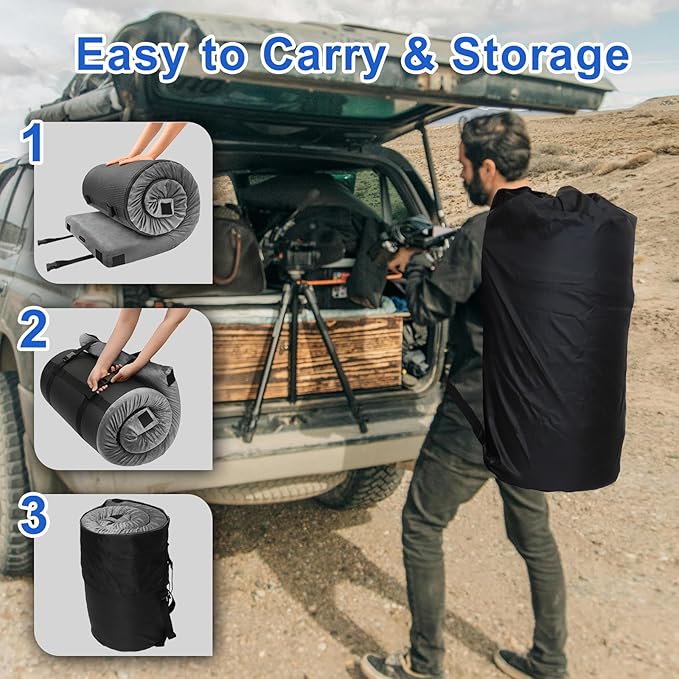 Memory Foam Camping Mattress pad, Comfortable Thick Floor Sleeping Mat for Adults with Waterproof and Non-Slip Bottom, Portable Roll Up Mattress for Sleepover Guest,Cot Mad for Car Camping