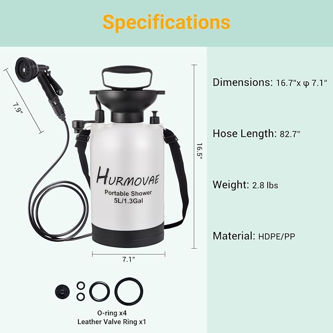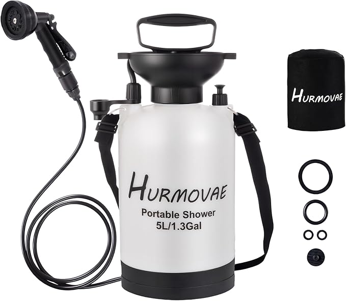 - POWERFUL, LIGHTWEIGHT & DURABLE – The manual pump delivers up to 45 PSI for strong rinsing, with a built-in relief valve for safety. Made with tough HDPE and PP materials and a handy shoulder strap, this Portable beach shower is easy to carry for RV trips, trail cleanups, garden care, or as a Camp shower at the beach. Enjoy ultimate rinsing power with this high pressure camping shower.