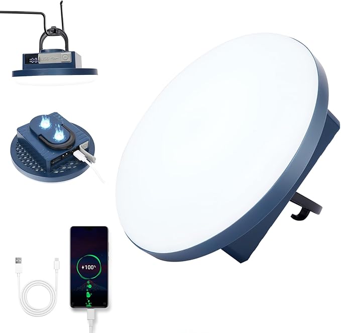 - Rechargeable & Emergency Power: The camping light is equipped with a large-capacity rechargeable battery and can last for more than 40 hours in low gear mode. The type-C charging port enables a rapid full charge within 2.5 hours. In addition, lanterns for power outages can also be used as emergency power sources to charge your mobile phone in an emergency.