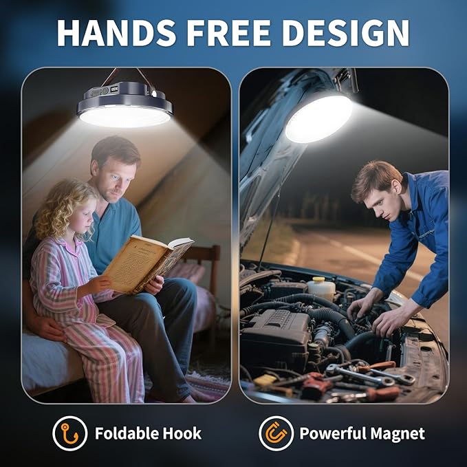 - Hands-Free & Versatile – Features a built-in hook and strong magnet, allowing you to hang or attach it anywhere for better lighting coverage. Ideal for camping, workshops, and car repairs.