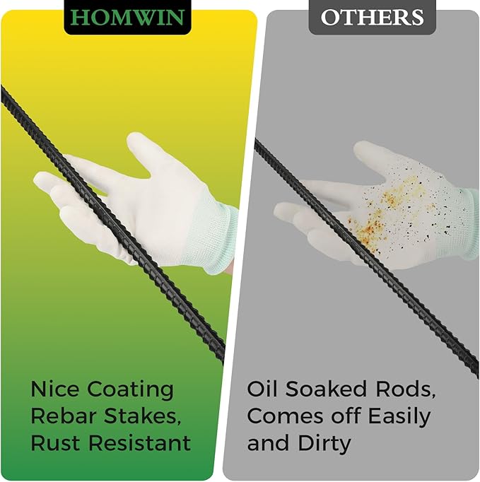 - 【Easy to Use】Simply use a hammer to strike the rebar stake firmly downward and it can be easily inserted into any type of soil.