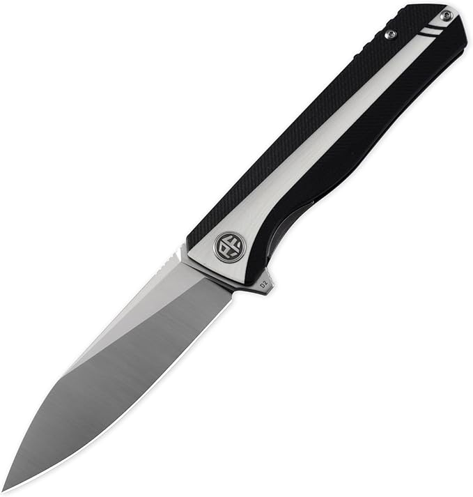Petrified fish PF818,3.54" D2 Blade,104g G10 Handle Flipper Folding knife (Black and White, Satin)