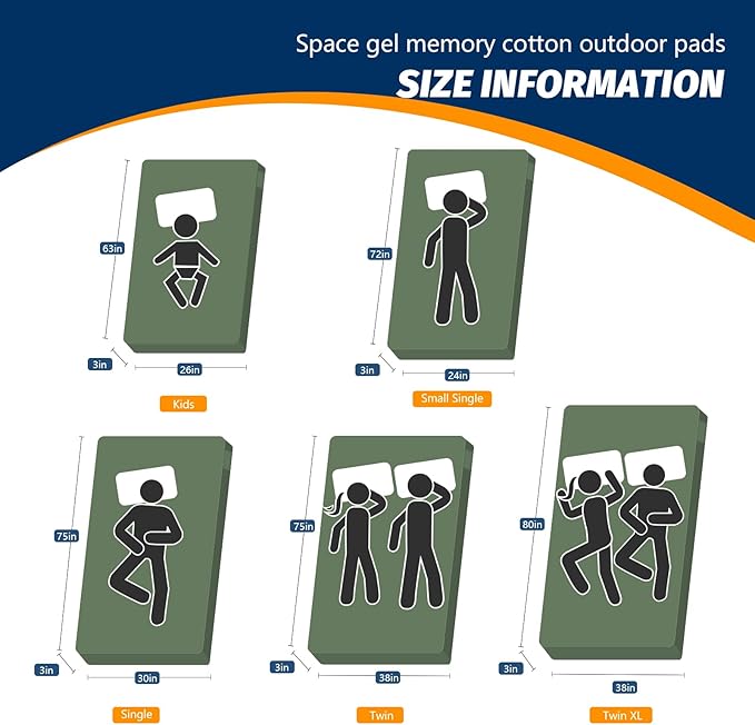 - 【COMFORT IS PRICELESS IN EVERY CAMPING TIME】The super soft and cozy memory foam camping mattress is made of high-density memory foam material, automatically adapts to the shape and weight of the body and provides full protection. So bring about excellent comfort and shock absorption effects. Compared to sleeping bag and camping air mattress, sleeping mattress for camping providing camping lovers with a high-level sleeping experience, allowing your body to fully rest and keep energetic.