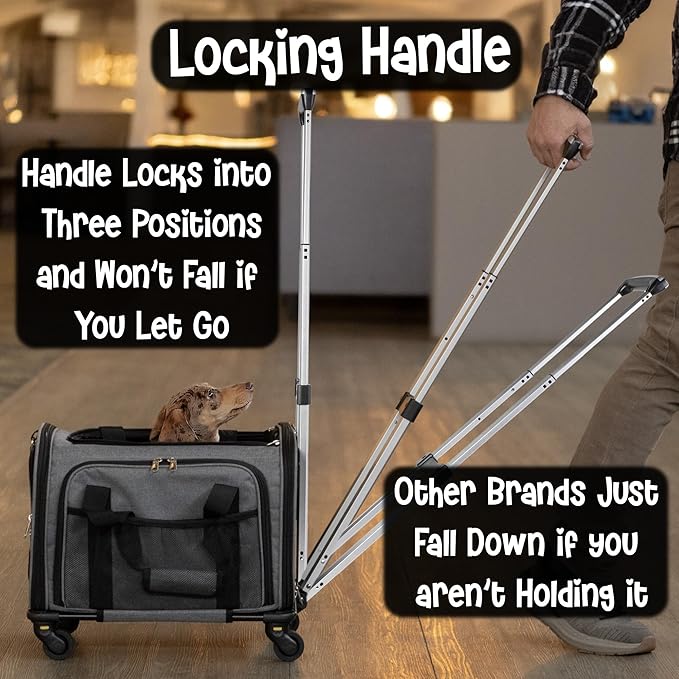 - [LOCKING HANDLE] Handle locks into three positions for maximum convenience. Other carrier handles just fall to ground when not being held.