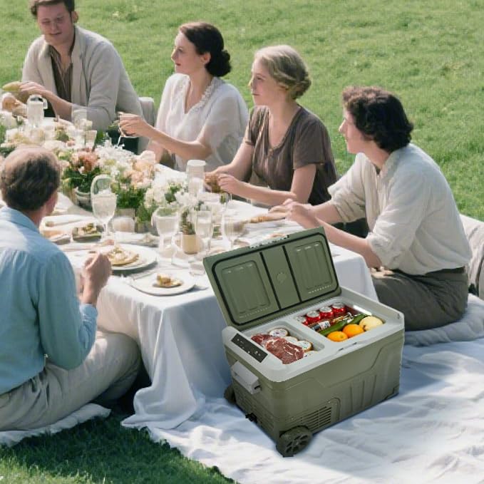 - 【High-Efficiency DC Compressor Cooling】 This portable refrigerator is equipped with a high-efficiency DC compressor, delivering exceptional cooling performance, rapid temperature reduction, and outstanding energy efficiency. Designed for reliability and longevity, it offers a wide temperature range (-4℉~68℉), allowing seamless switching between refrigeration and freezing modes. Whether you're using it as a car fridge for road trips or an igloo cooler with wheels for outdoor adventures, it keeps your food and drinks fresh anytime, anywhere.