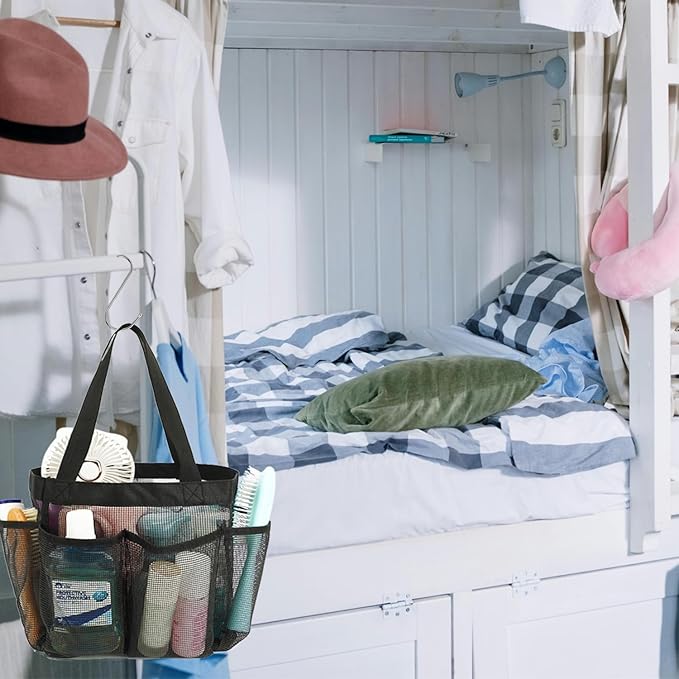 - 💪 【𝐃𝐮𝐫𝐚𝐛𝐥𝐞 & 𝐏𝐨𝐫𝐭𝐚𝐛𝐥𝐞】This mesh shower caddy basket is constructed from sturdy 600D polyester and tear-resistant Odorless mesh materials, and the reinforced stitching further ensures exceptional durability. This dorm must haves for college students girls & boys is lightweight, collapsible and easy to carry. The 9-inch long shoulder strap of this college essentials for students adds a significant comfort factor to its transportation.