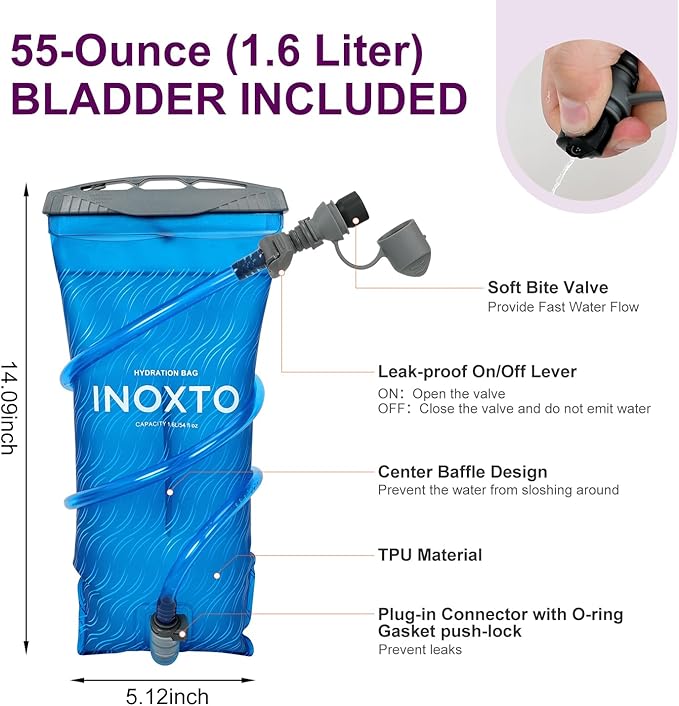 • 【Extensive Applications】Our hydration pack with water bladder is the perfect sports gear you hydrated while running, marathon, cycling, hiking, skiing, climbing, race and training or any adventure outdoors. This running hydration vest can be a are great companions for families and friends. IX INOXTO hydration backpack is always be there for you. If you have any problems, please reach out to us, we will reply within 24hrs.