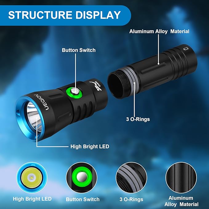 - 【🐳Multisituation emergency equipment】Suitable for scuba diving/snorkeling/cave exploration/underwater photography and other professional fields and can also be used as a reliable lighting device for outdoor camping and disaster emergency.