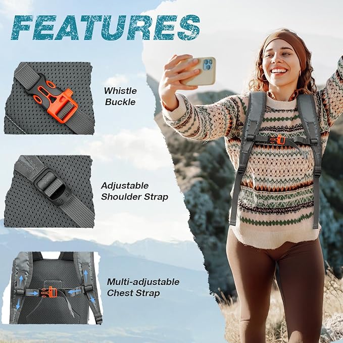 - 【Multi-adjustable Chest Strap】The lightweight backpack with adjustable straps suits various body types and activities, ensuring comfortable weight distribution and enhancing backpacking ease. By offering flexibility for a personalized fit, our backpack provides optimal comfort and stability.