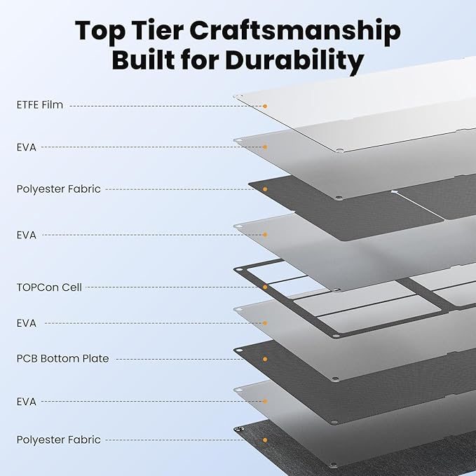 - 【Long-lasting and IP68 Waterproof】100W folding solar panel utilizes ETFE coating material, ensuring waterproof, dustproof, and long-lasting durability, capable of withstanding any harsh weather . Additionally, there's a pocket on the exterior of the solar panels where the controller is housed, ensuring worry-free outdoor activities even during sudden rain. However, the control box is not waterproof,in order to prolong the lifespan of 100watt solar panel, please don't soak it into water.