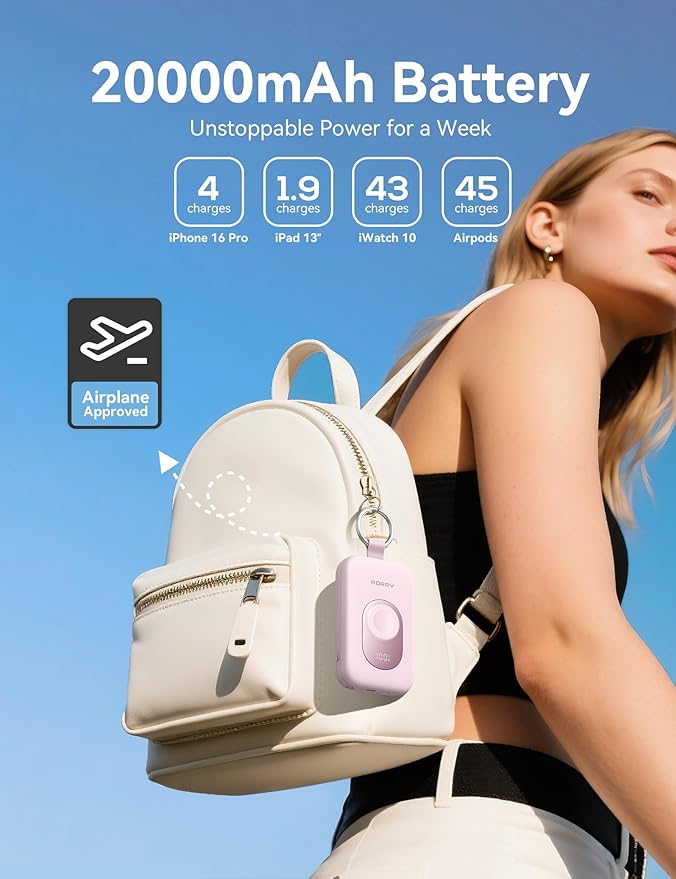 - Compact & Travel-Ready: Smaller and lighter than you'd expect, this power bank for iPhone is about the weight of two iPhone 15 Pro (0.83lb). It also comes with a built-in keychain, perfect for hanging on your bag or holding securely while charging. Additionally, this portable apple watch charger is airplane-approved, a real must have travel essentials for you!