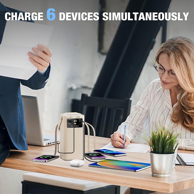 - 6 Outputs & 3 Inputs - This portable power bank is designed with 6 output ports and 3 input options, allowing you to charge up to 6 devices simultaneously, compatible with iPhone, Android, and Micro-USB devices. For recharging, you can choose from 3 input methods: a built-in charging cable, a USB-C input, a Micro-USB input. (Bulit-in cable is detachable)