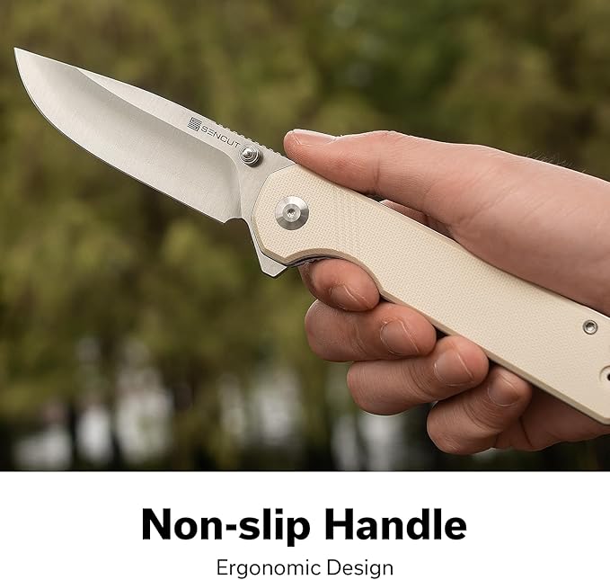 SENCUT Aetheris Pocket Knife, EDC Folding Knife with 3.68'' 9Cr18MoV Blade & G10 Handle, Reversible Clip for Camping Hiking S24095-1 (Ivory)