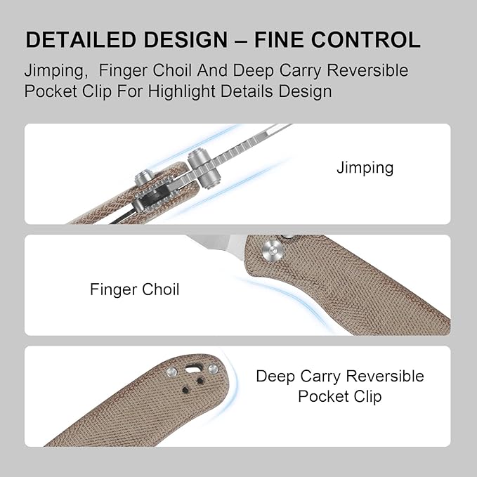 - Detailed Design-Fine Control:The Drop Bear 2 is built with user-focused details, including spine jimping for confident thumb placement during precision work, a finger choil for added safety and control, and a deep-carry reversible pocket clip that ensures discreet and secure everyday carry.