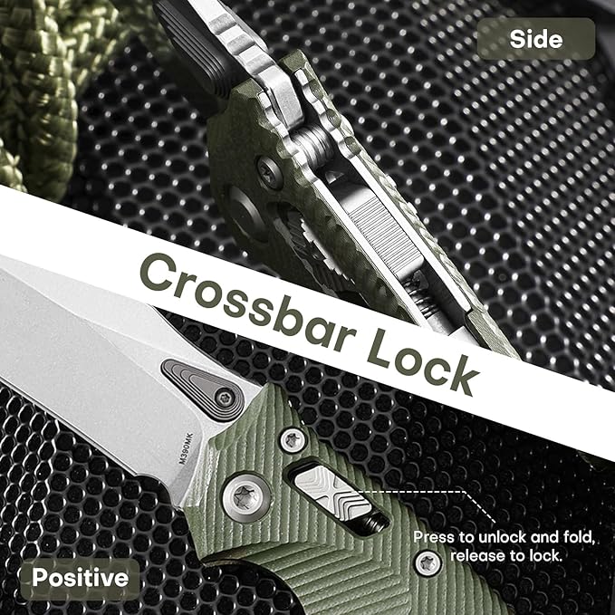 Folding Pocket Knife for Men, M390 3.7" Blade with G10 Handle and Crossbar Lock, EDC Knife for Camping, Hiking, and Outdoor Everyday Carry (Green)