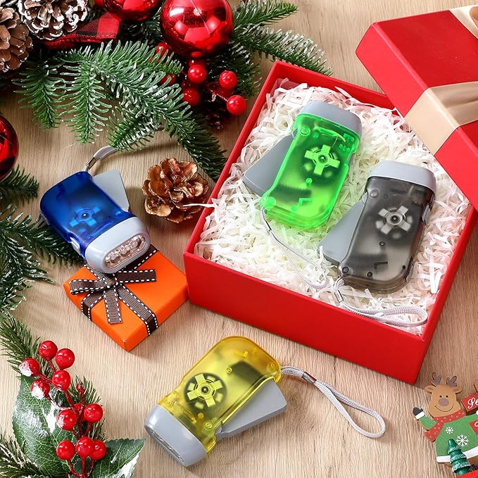 Retisee 48 Pcs Hand Crank Flashlight No Battery Required Torch Light Manual Press Flashlight 3 LED Squeeze Torch Light for Shoeboxes Camping Hiking(Green, Blue, Yellow, Gray)