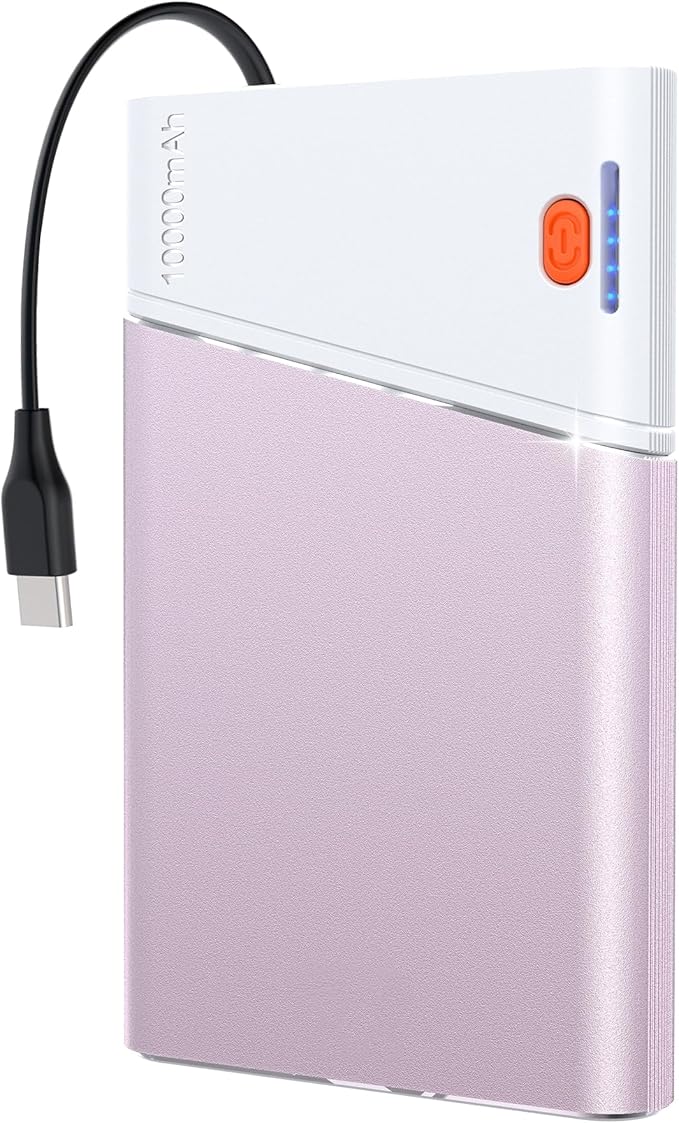 Portable Charger Power Bank, 10000mAh 22.5W PD Super Fast Charging Powerbank with Built-in USB C in&Out Cable, Slim External Phone Battery Pack for iPhone 17/16/15 iPad Samsung S24 Android etc