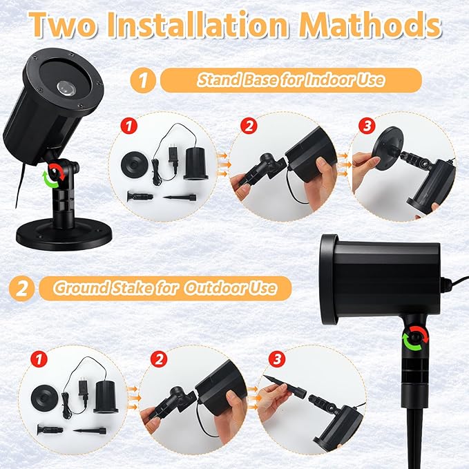 - 2 Installation Methods & 180°Rotation: the Halloween decoration light comes with a round base and pointed plug, you can easily mount it on the wall, fix it on the ground, or insert it into the lawn. 180° rotatable stand allows easy adjustment of projection direction, provide you with the projection effect
