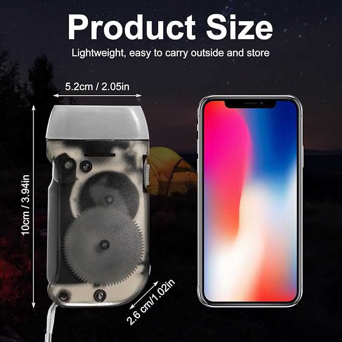 - Small and Portable Size: the emergency hand crank flashlight measures approx. 10 x 5.2 x 2.6 cm/ 3.94 x 2.05 x 1.02 inches, and the small size is convenient to use and carry, can be placed in your pockets, backpacks, purse, and more