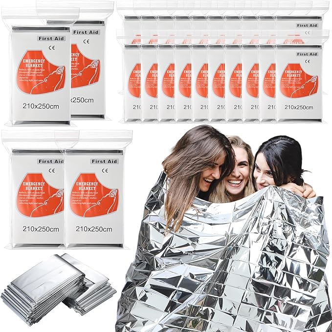 Kingdder Oversized Emergency Blankets 30 Pack 99" L x 83" W Emergency Thermal Blankets Silver Foil Survival Blanket Kit for Outdoors, Camping, Hiking, Homeless, First Aid