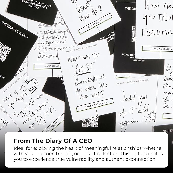 - Crafted into 3 Curated Levels of Connection — The Diary of a CEO Conversation Cards 2nd Edition includes 52 brand-new scenario cards divided into three levels. Level 1 “Warm Up” breaks the ice, Level 2 “Open Up” deepens emotional sharing, and Level 3 “The Deep End” inspires vulnerability. Great as couple connect games or family conversation cards, they guide you toward meaningful conversations and authentic connection.
