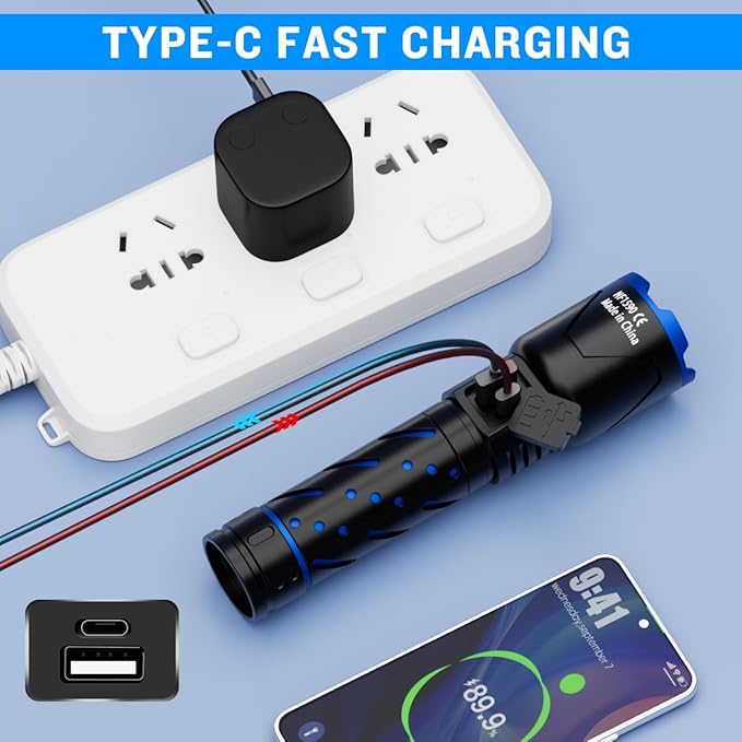 - LED FLASHLIGHTS KIT: You will receive: 1 x High Lumen Flashlight, 1 x TYPE-C Cable, 1 x USB Charger, and 1 x User Manual