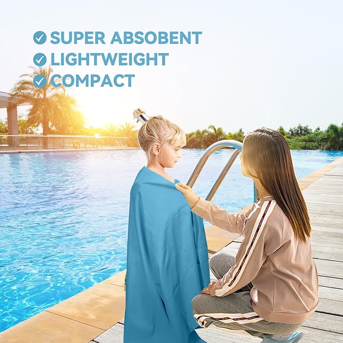 - Super Absorbent & Quick dry:This towel absorbs 5 times its own weight in water and dries 3 times faster than standard cotton towels. It can keep your body dry all the time, and the quick-drying technology keeps it from having a musty smell.