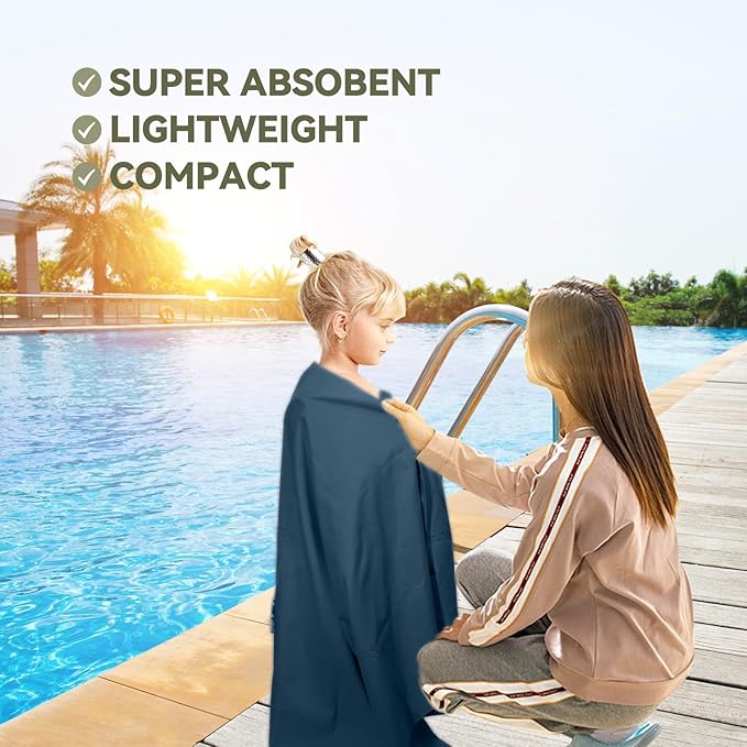 Microfiber Beach Towel-Perfect for Travel, Sports, Camping, Swimming, Yoga, Gym- Quick Dry, Sand Free, Compact, Lightweight, Absorbent (Navy Blue,Large(160x90cm, 63x35”))