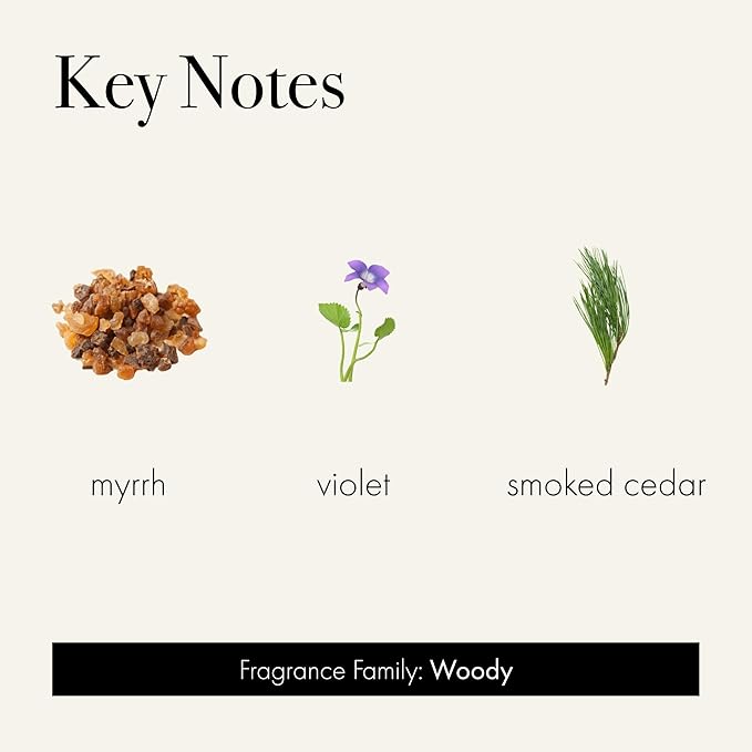 - HOLIDAY SCENT - Intricate woody notes. A spark of magic. Aromatic myrrh harmonizes with smoked cedar and violet for a festive, captivating effect that recalls an enchanted wonderland.