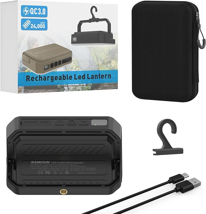 - Professional Support - (1) LED Camping Lantern 24000 mAh (2) Hook (3) Storage bag (4) USB-C cable (5) User's Guide. We will provide a 2-year customer support. So if you have any quality or other issues at all, just let us know and it will be properly give you a satisfactory solution!
