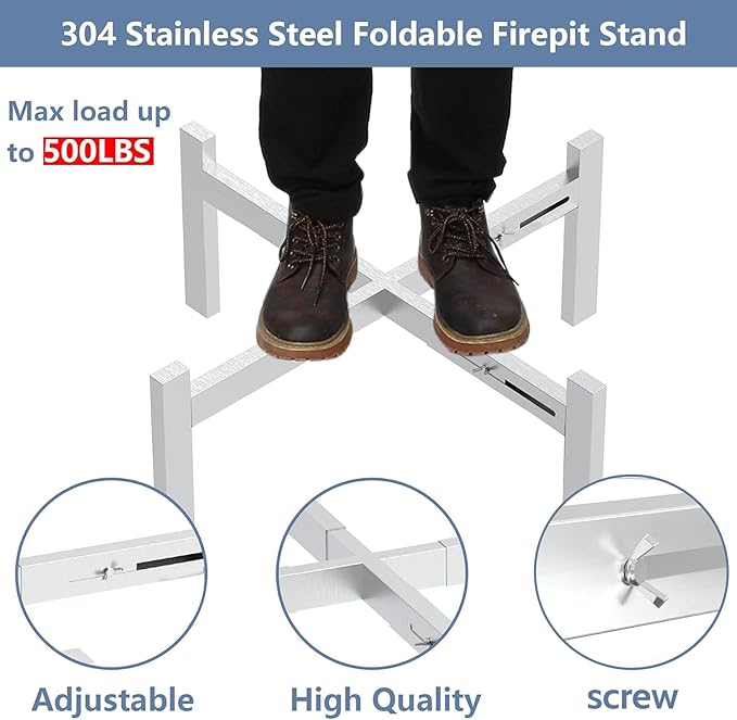 - 304 Solid Stainless Steel Firepit Stand: Compared with other fire pit tripod made of iron or aluminum, our yukon fire pit stand use premium quality 304 stainless steel material, wear-resistant, corrosion-resistant and high-temperature resistant to harsh environments. Even if it rains and snows, it will not rust, not easy to deformation, can be used for a long time.
